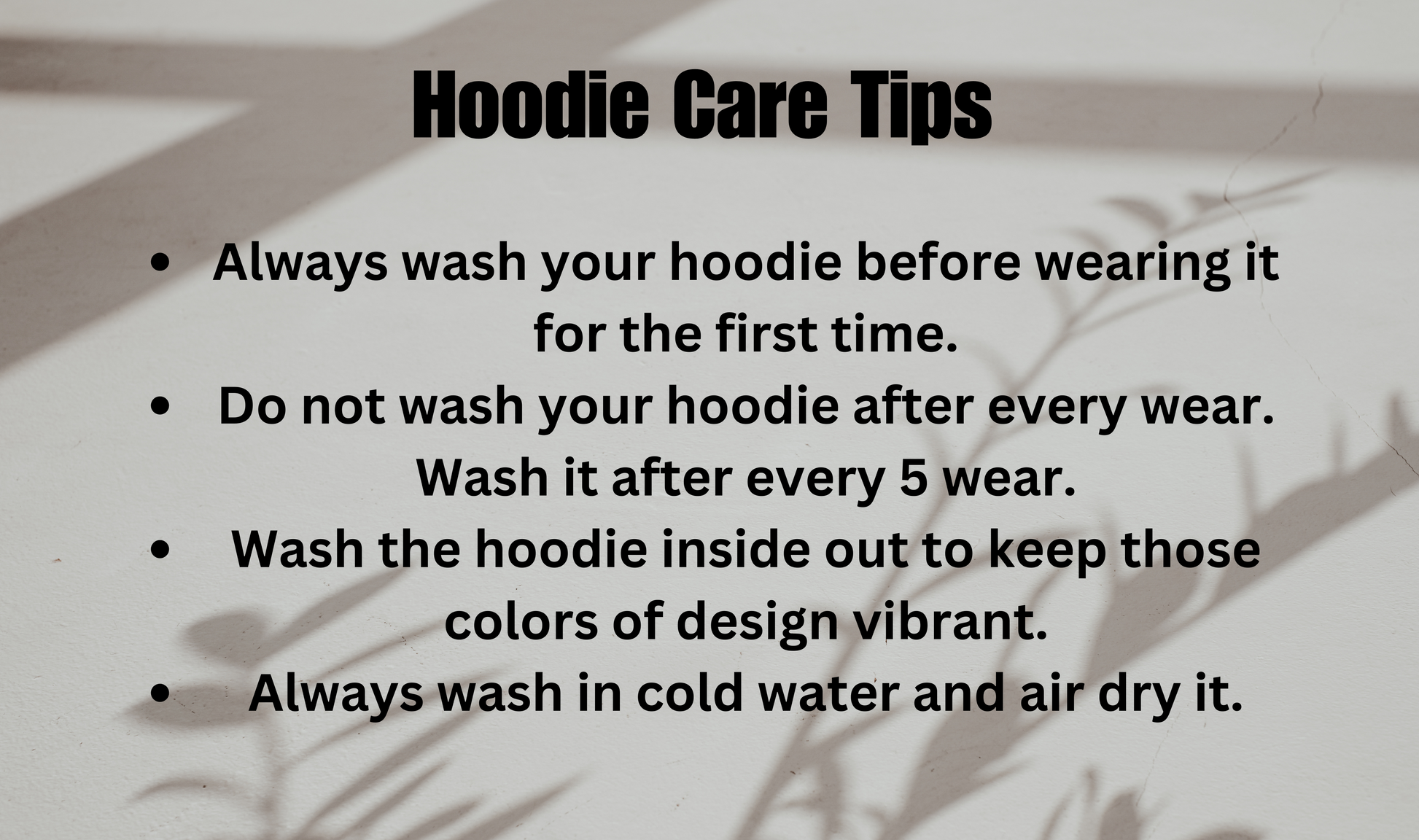 Please wash your hoodie inside out before wearing for the first time.